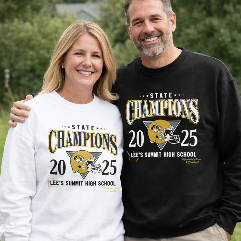 Available in classic black or white, this sweatshirt is a timeless way to represent an unforgettable state championship victory.